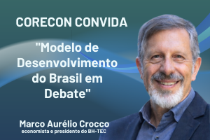 Corecon-MG promove, no dia 05 de março de 2026, às 18h30, no Auditório do Corecon-MG, em Belo Horizonte, a palestra “Modelo de Desenvolvimento do Brasil em Debate”, com o economista e presidente da BH-TEC Marco Aurélio Crocco.