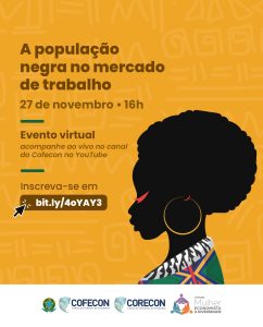 O Conselho Federal de Economia (Cofecon), por meio da Comissão Mulher Economista e Diversidade, realiza nesta quinta-feira (27), às 16h, uma live especial em alusão ao Mês da Consciência Negra. Com transmissão pelo canal oficial do Cofecon no YouTube, o evento terá como tema “A população negra no mercado de trabalho” e reunirá economistas para debater desigualdades estruturais e o papel do trabalho na promoção da justiça social. As inscrições são gratuitas e abertas a economistas, estudantes e ao público interessado, com emissão de certificados para os inscritos.